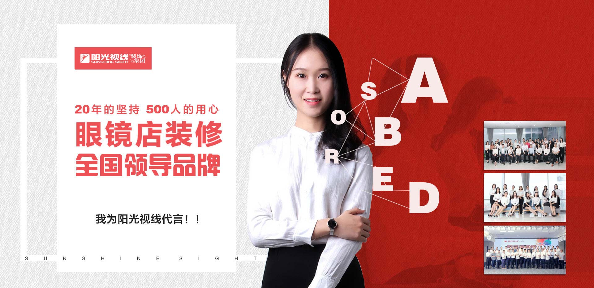 陽光視線是一家集設計、研發、生產、安裝、施工為一體的綜合性企業!20年專注服務于眼鏡行業,擁有19個銷售網點,遍布32個省份;500多名員工,其中設計研發、工程安裝、管理、營銷、等中高級執行人才160余名;2000平米的辦公環境;公司研發能力強,并能迅速將研發成果轉化為生產與商業效益;擁有超具規模的展柜生產基地、生產流程、工藝技術以及生產設備。